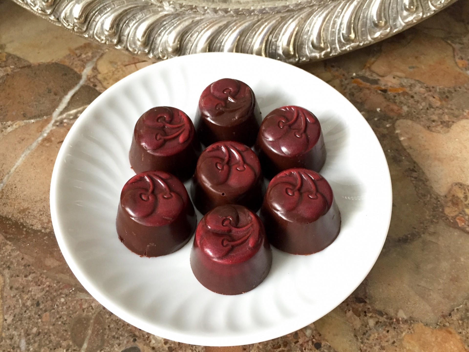Apesar de ser artesanal, não é feito cá na Quinta. É que nós de chocolate só o sabemos provar. E foi isso mesmo que fizémos. Provámos. E gostámos tanto que a experiência quase nos fez esquecer as saudades das Cerejas -- e isso é o maior elogio que podemos fazer!...
