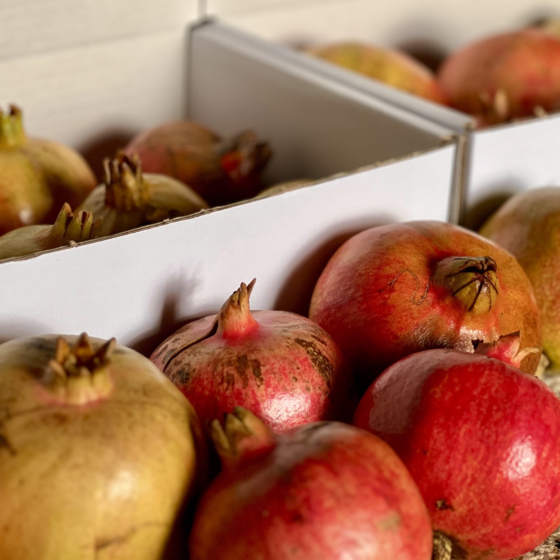 As nossas romãs, tal como as uvas ou os marmelos, não levam qualquer tipo de tratamento, por isso nem sempre chegam à maturação com o melhor aspecto. Mas as que "escapam" normalmente são belíssimas. Quer prová-las em sua casa?
