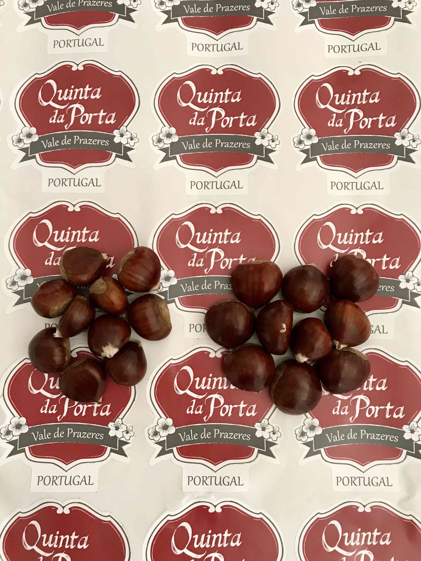 As castanhas fazem parte da nossa história. Tanto que uma das propriedades mais antigas da família se chamava precisamente Monte da Castanheira. Ainda no séc. XIX a terrível "doença da tinta" (uma praga contemporânea da filoxera que dizimou a maior parte das vinhas do Douro) acabou com a maior parte dos soutos de castanheiros, que dominavam a paisagem da Beira Baixa. Durante o séc. XX assistimos a uma verdadeira "revolução" na agricultura da Cova da Beira, e os antigos soutos foram sendo progressivamente ocupados por cerejais. Agora, e em resultado de uma parceria entre a Quinta da Porta e a Cooperativa de Penela da Beira, apresentamos-lhe estas belas castanhas, produzidas "do outro lado da Serra" pelos nossos colegas agricultores da Beira Alta.