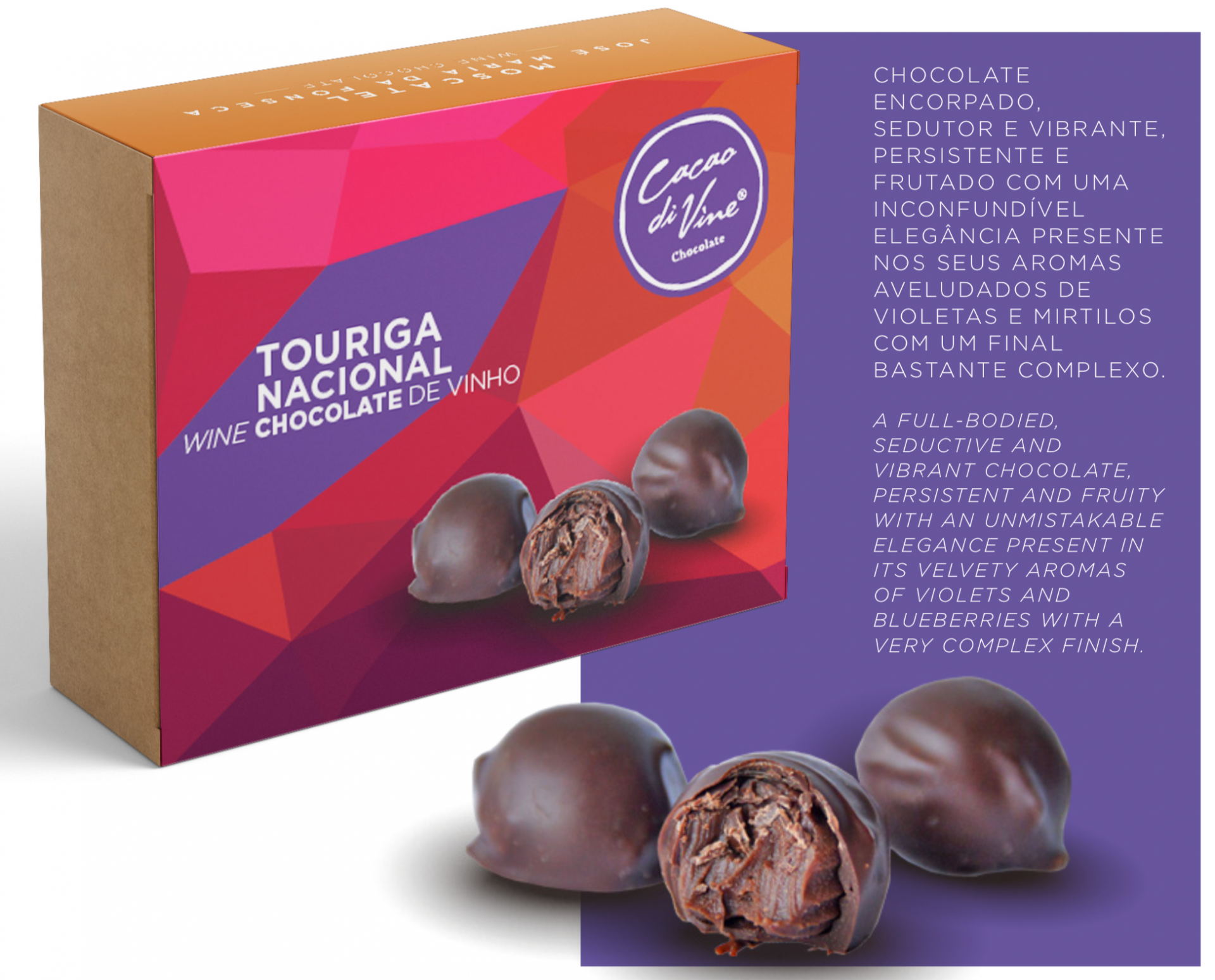 Um chocolate de excelência encorpado em Touriga Nacional. Único!