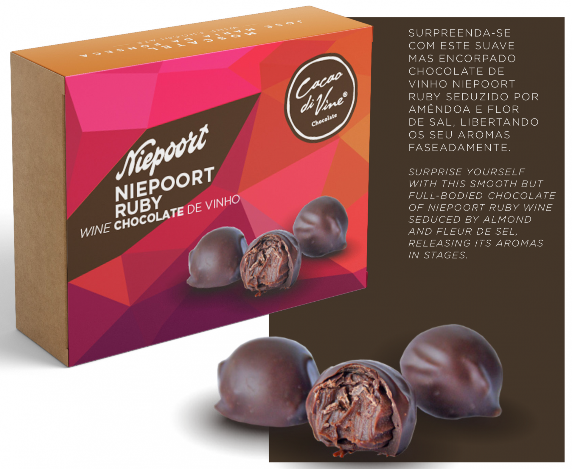 Surpreenda-se com este suave mas encorpado chocolate de vinho Niepoort Ruby, seduzido por amêndoa e flor de sal, libertado os seus aromas faseadamente.
