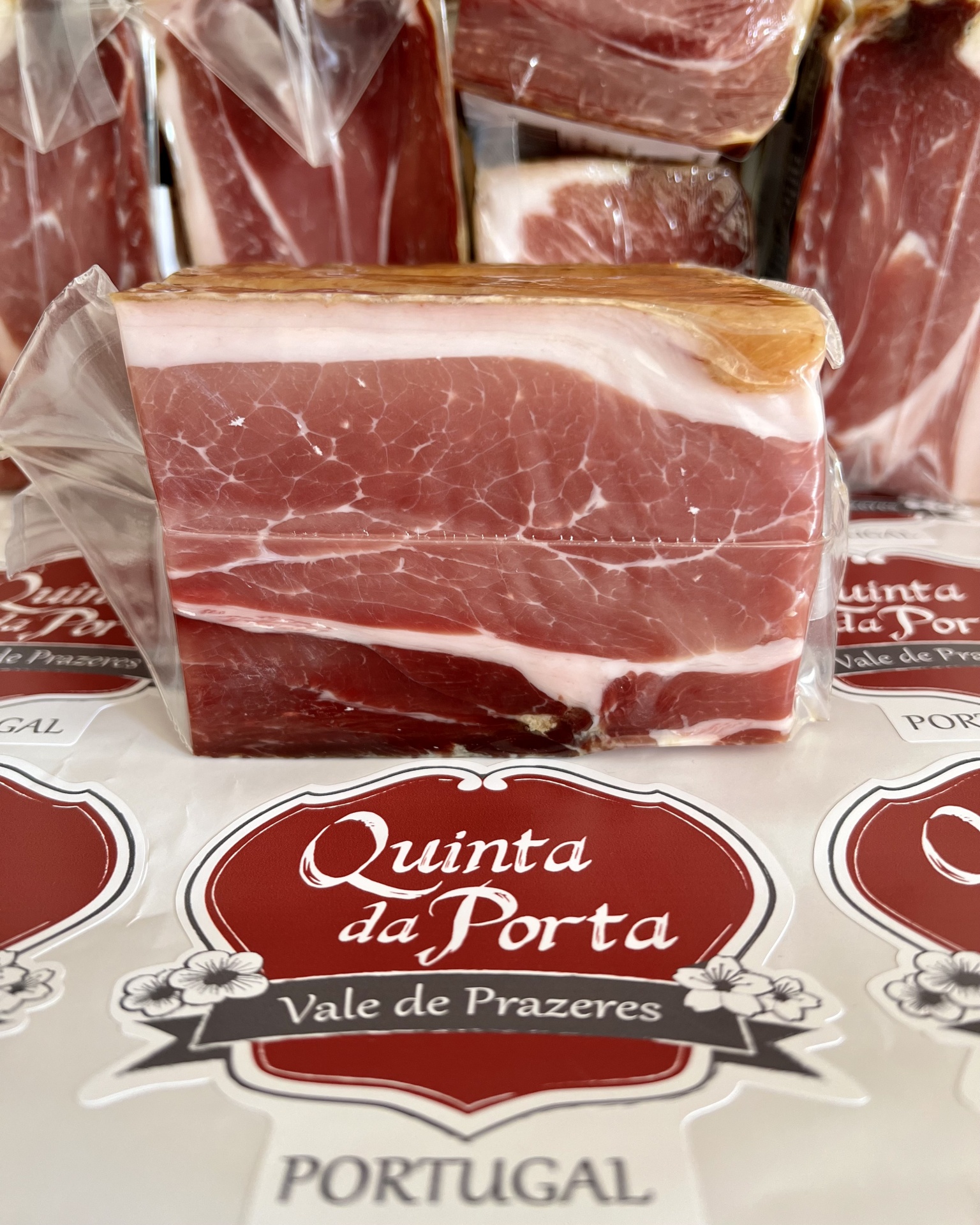 Perna de suíno com osso, curada por salga profunda e seguidamente exposta à secagem e maturação. Desossada e cortada em pedaços. Exterior - aspeto curado coberto pelo courato. Interior (ao corte) - aspeto avermelhado mais ou menos escuro da carne, e branco ou nacarado da gordura parcialmente infiltrada com aspeto oleoso e brilhante, com aroma e sabor característico.